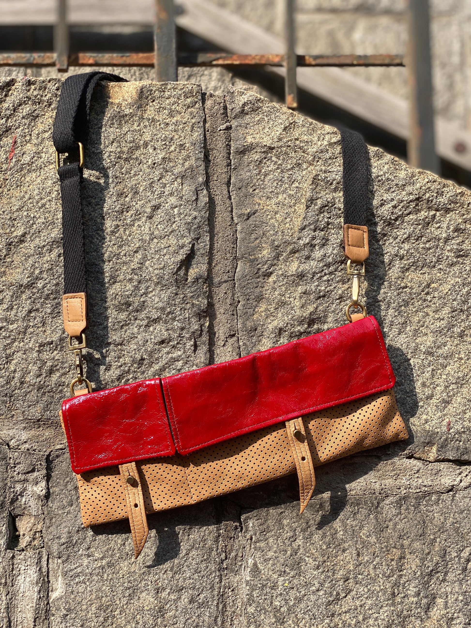 Twin-Pack Bag - a lightweight and practical unisex bag that can be worn comfortably across the body. This bag is easy to use that it will quickly become your go-to accessory. The perforated leather gives it a sporty look, and the brilliant red stands out beautifully in contrast. The pockets are fully lined.